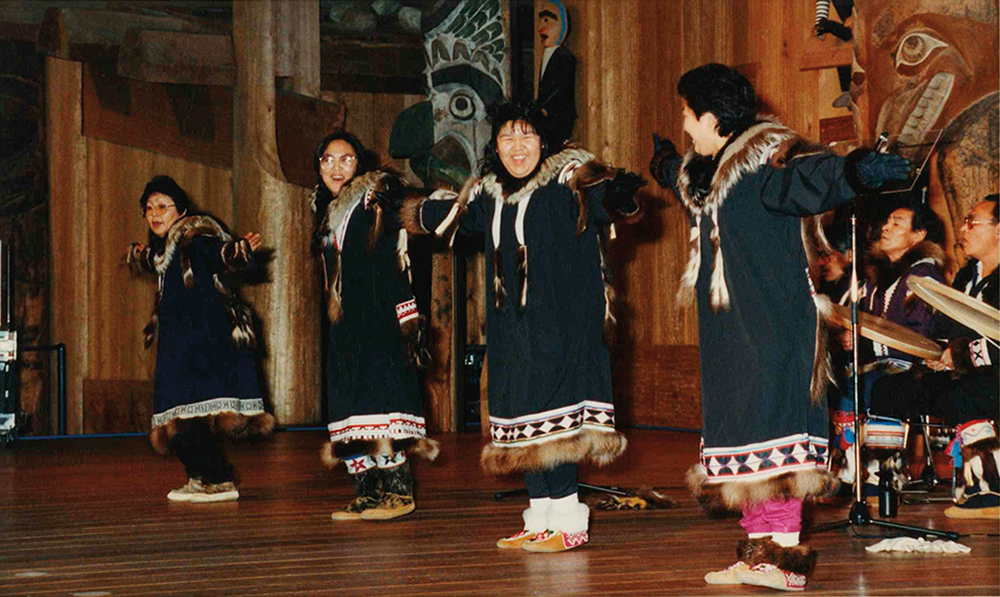 Billy Day used to bring the group down south to perform, like in Montreal, QC. He said the dancers were fascinated by Montreal because most of them had never been out of the North—most if not all of them were born in the early part of the nineteenth century and could remember seeing their first White man or their first time using a rifle! Another time, Billy brought most of the original dance group to Mexico—you can imagine how hot they were in their parkas and gowaks! Billy introduced the world to the art of Inuvialuit drum dancing. The dancers came back home and began to give performances in their own communities. After years of laying dormant in the minds and souls of the Elders, the art of drum dancing began to make a revival. The colonial attitudes which tried to suffocate Inuvialuit culture failed. The new revival instilled a sense of pride into the Inuvialuit and drum dance groups began to sprout in the communities.
