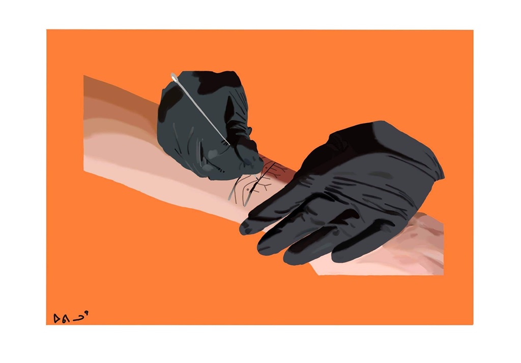 Corey became interested in tattooing after the Inuit Tattoo Revitalization Project came to their hometown in December 2017. Through the project the artist received their first tattoo: a V tattoo on the back of their neck in the style of their grandmother’s region. “That kind of started me on this journey of wanting to start tattooing for people because I saw how much impact it had on our communities and on the people receiving the tattoos. And I wanted to be part of that,” says Corey.[1] After moving to Ottawa in August 2018, Corey received another tattoo from a local Inuk tattoo artist who walked them through the process of tattooing and shared helpful resources. From there, Corey went on to purchase their own tattooing supplies and practised on themself during the first COVID-19 lockdown in the spring of 2020. They eventually began tattooing others and have grown their practice from there.