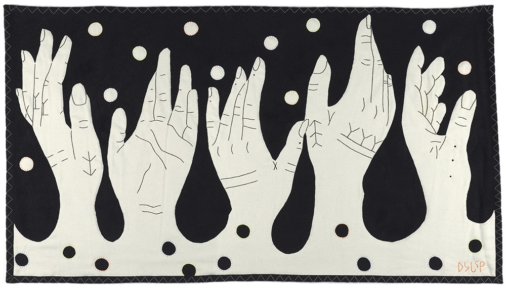 In 2022, Kabloona’s practice shifted away from production work to larger-scale projects when she embarked on a Creative Research Residency with the Art Gallery of Guelph that culminated in displaying her art in ᑲᔪHᐃᐅᑎHᐃᒪᔭᑦᑲ - Kajuhiutihimajatka - What I’m Carrying On. She had the opportunity to spend time with her grandmother’s works in the museum’s collection and to create a wallhanging of her own, Tiriganiaq, a feminist retelling of the story of the Fox Wife that, like much of her work, explores the gendered violence in traditional Inuit stories and seeks to find a new way forward for the female characters. She came away from the residency with a new appreciation for the art of textiles and the tiny, perfect stitches employed by Inuit seamstresses to make them. Also in 2022, she created two polar bear prints for the theatre poster of the National Art Centre’s production of The Breathing Hole, directed by Reneltta Arluk, worked with Google to create three Google Pixel wallpapers to celebrate World Indigenous Peoples’ Day and designed a stamp for Canada Post to recognize the National Day for Truth and Reconciliation.
