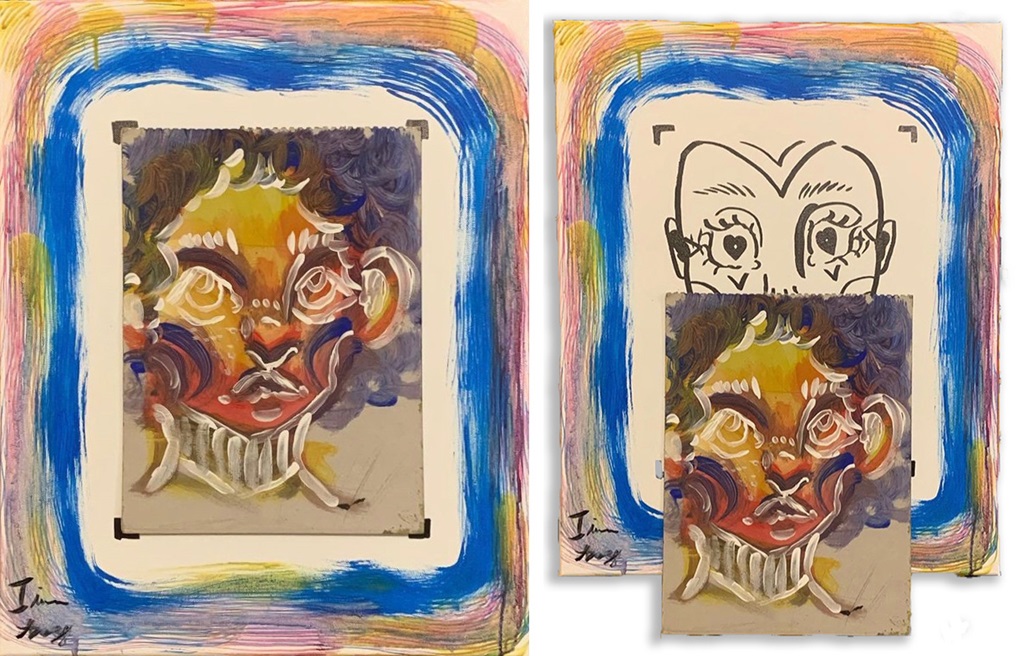 Arngaq began drawing at a young age and later taught herself to work with oil paint using instructional videos online. With the goal of learning more paint techniques, she enrolled in Dawson College’s Studio Arts program in Montreal, QC, in 2023, where she is studying painting as well as working with a variety of other mediums such as conte and markers, her new favourite drawing option. Arngaq is also beginning to incorporate non-traditional items like flowers into her work, and to mix mediums like oil with markers and other materials. “I’m just using anything really,” she says of her mixing approach. [1]