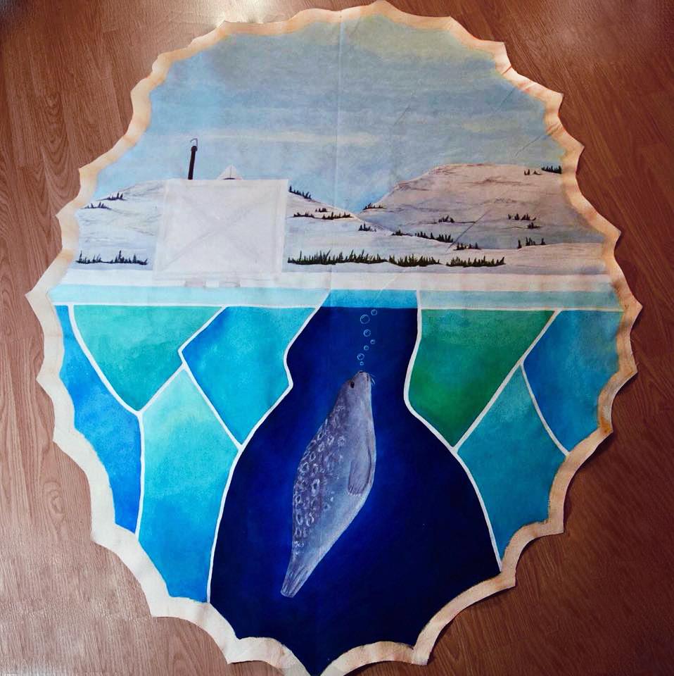 Winters began her artistic practise by drawing, and quickly developed as a portraitist, selling her first commissioned works at age 13 [1]. Her first set of acrylic paints came from school principal Liz Mitchell, from supplies the school wasn’t using [2]; Winters sold her first acrylic painting at age 15 [3]. Winters has been heavily influenced by her studies in biology, and hopes to use her work to advocate for the preservation of Inuit culture, values and surrounding environment. “My art is trying to get back to the basics and preserve that way of thinking and all things Inuit. I feel like people, especially Inuit people, don’t realize how technologically advanced our traditions actually are . . . like making a kayak out of seal skin. Only we could do that.” [4]